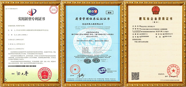 經(jīng)過二十多年發(fā)展與積累,已取得環(huán)保工程專業(yè)承包壹級、建筑機電專業(yè)承包叁級、環(huán)境工程設(shè)計能力乙級、環(huán)境污染治理能力乙級、安全生產(chǎn)標準化三級等資格證書。