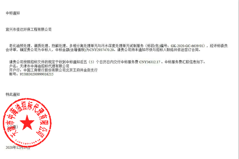 中標中海油老化油預(yù)處理相關(guān)項目  2021/3/10